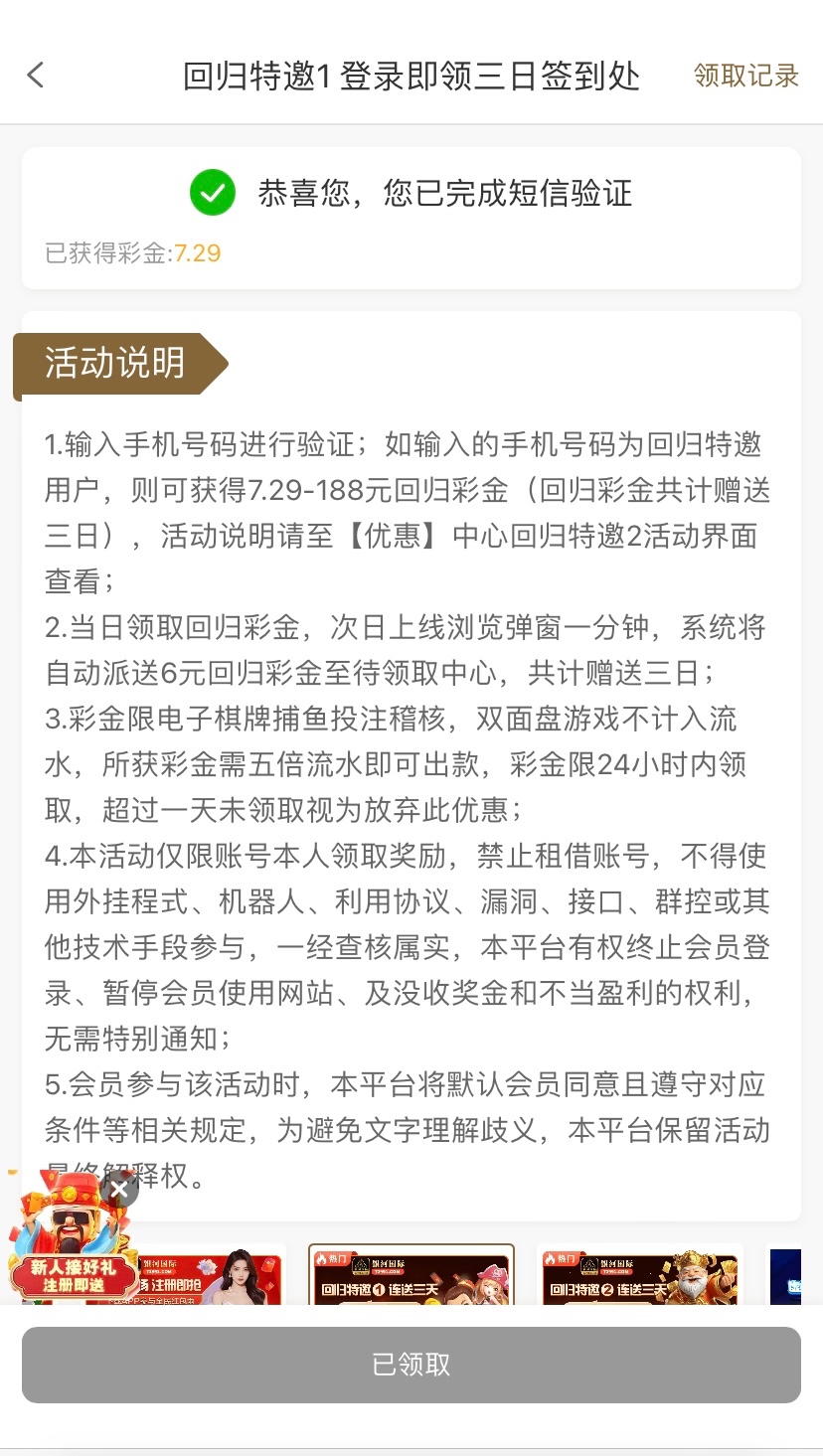 之前是特邀的兄弟可以上号在优惠里找到回归特邀连送三天5倍流水